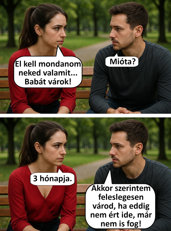 1. A minap összefutottam az egyik volt exemmel. Váltottunk pár szót, és közben észrevettem, hogy feltűnően gömbölyödik a pocakja. Óvatosan megsimiztem, mert kíváncsi voltam, hogy rugdos-e már a baba, mire ő nagyon furán nézett rám, és megkérdezte, hogy mégis mit művelek?!
