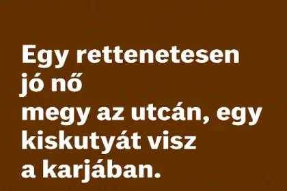 Egy rettenetesen jó nő megy az utcán, egy kiskutyát visz a karjában.…
