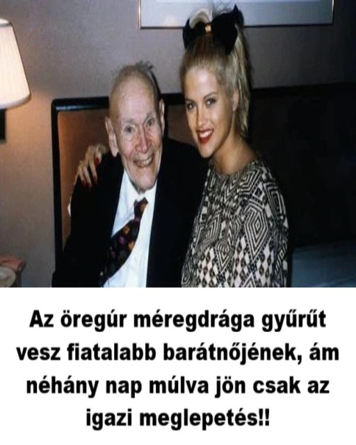 Egy idősebb, őszhajú férfi sétál be egy belvárosi ékszerüzletbe oldalán egy csinos fiatal lánnyal.