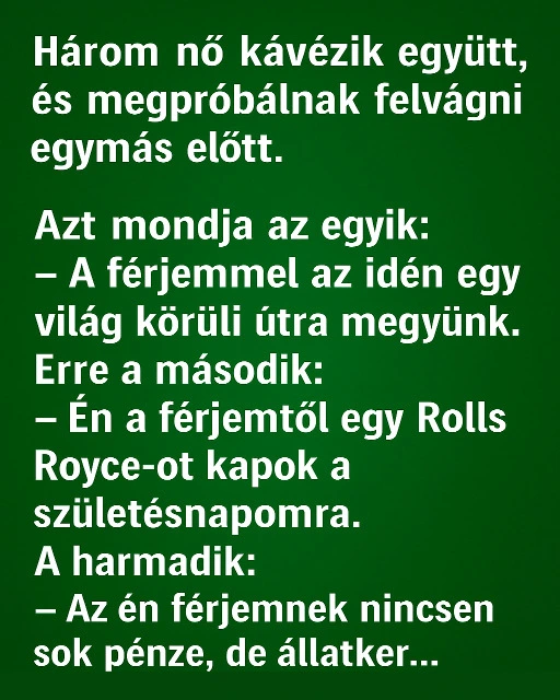 Három nő kávézik együtt, és megpróbálnak felvágni egymás előtt.