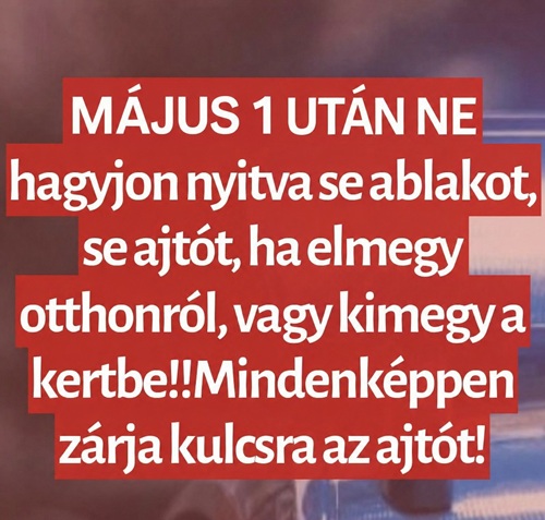 Május 1 után NE hagyjon nyitva se ablakot, se ajtót – egy perc is elég, hogy kifosszanak!