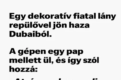 Egy dekoratív fiatal lány repülővel jön haza Dubaiból. A gépen egy pap…