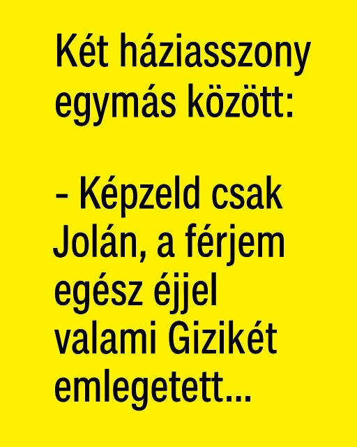 – Képzeld csak Jolán, a férjem egész éjjel valami Gizikét emlegetett…