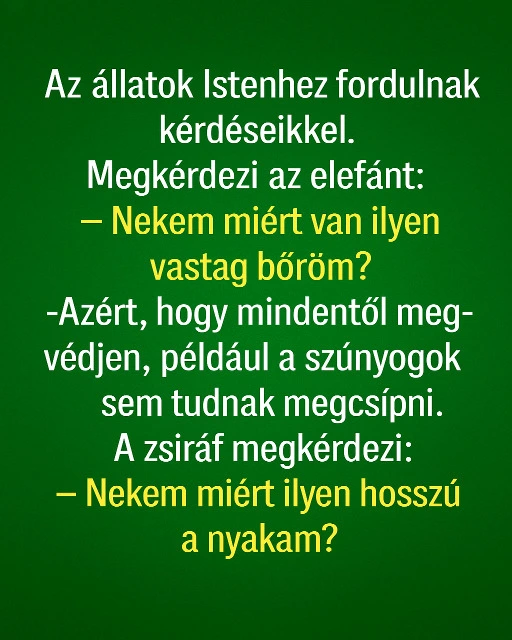 Az állatok Istenhez fordulnak kérdéseikkel. Megkérdezi az elefánt: